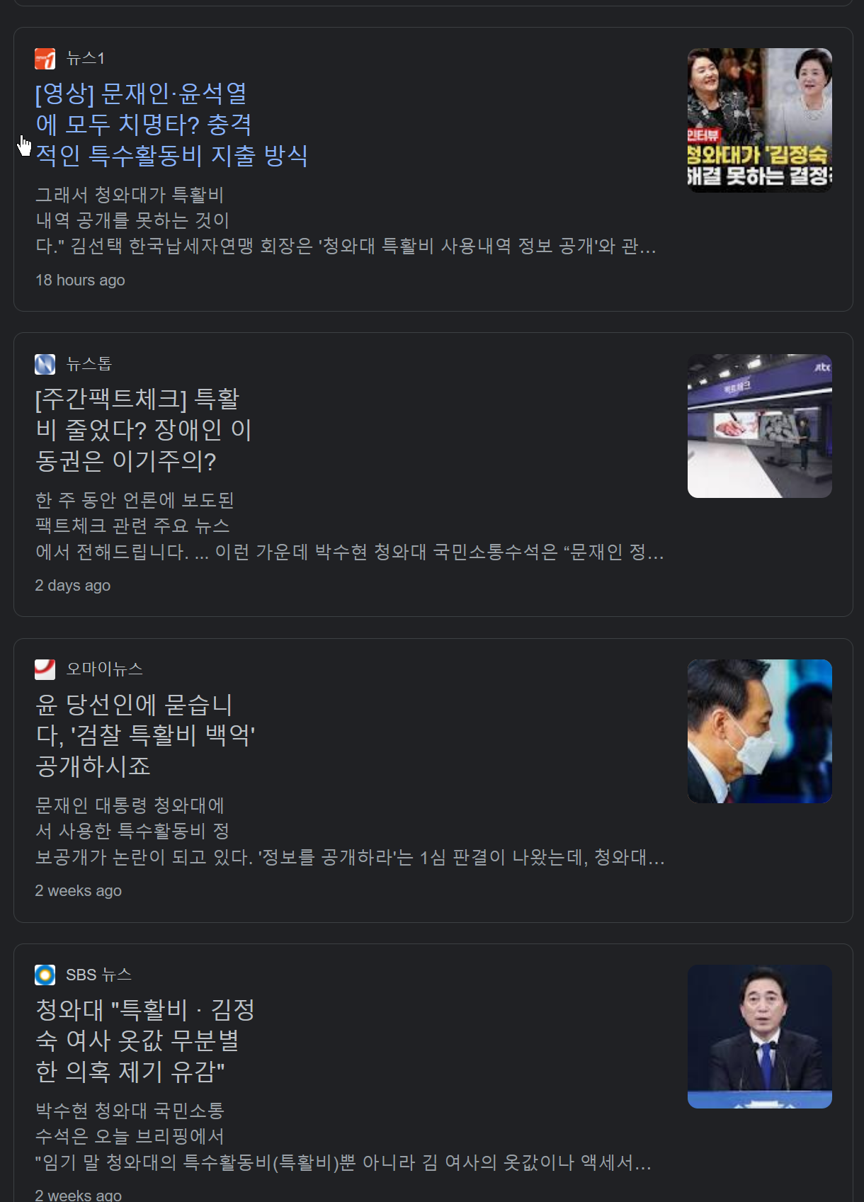 한 유튜버의 경우에는 특활비(특수 활동 비)에 대해서 청와대에서 사용한 금액을
